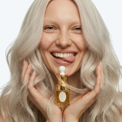 Then part your hair in sections and apply 6–8 drops of Lumina Oil directly onto your scalp. Massage for another 3-5 minutes to ensure the formula reaches the scalp.